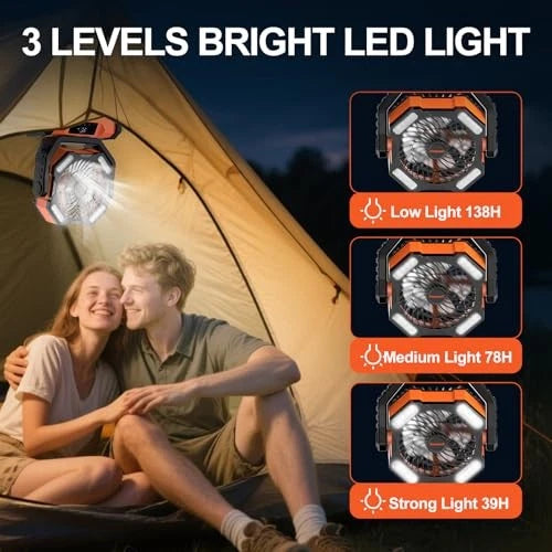 ¿Planeas un viaje de camping o una tarde de picnic? Este ventilador portátil es tu compañero ideal. Con batería recargable, luz LED integrada y control remoto, ¡no te faltará comodidad!